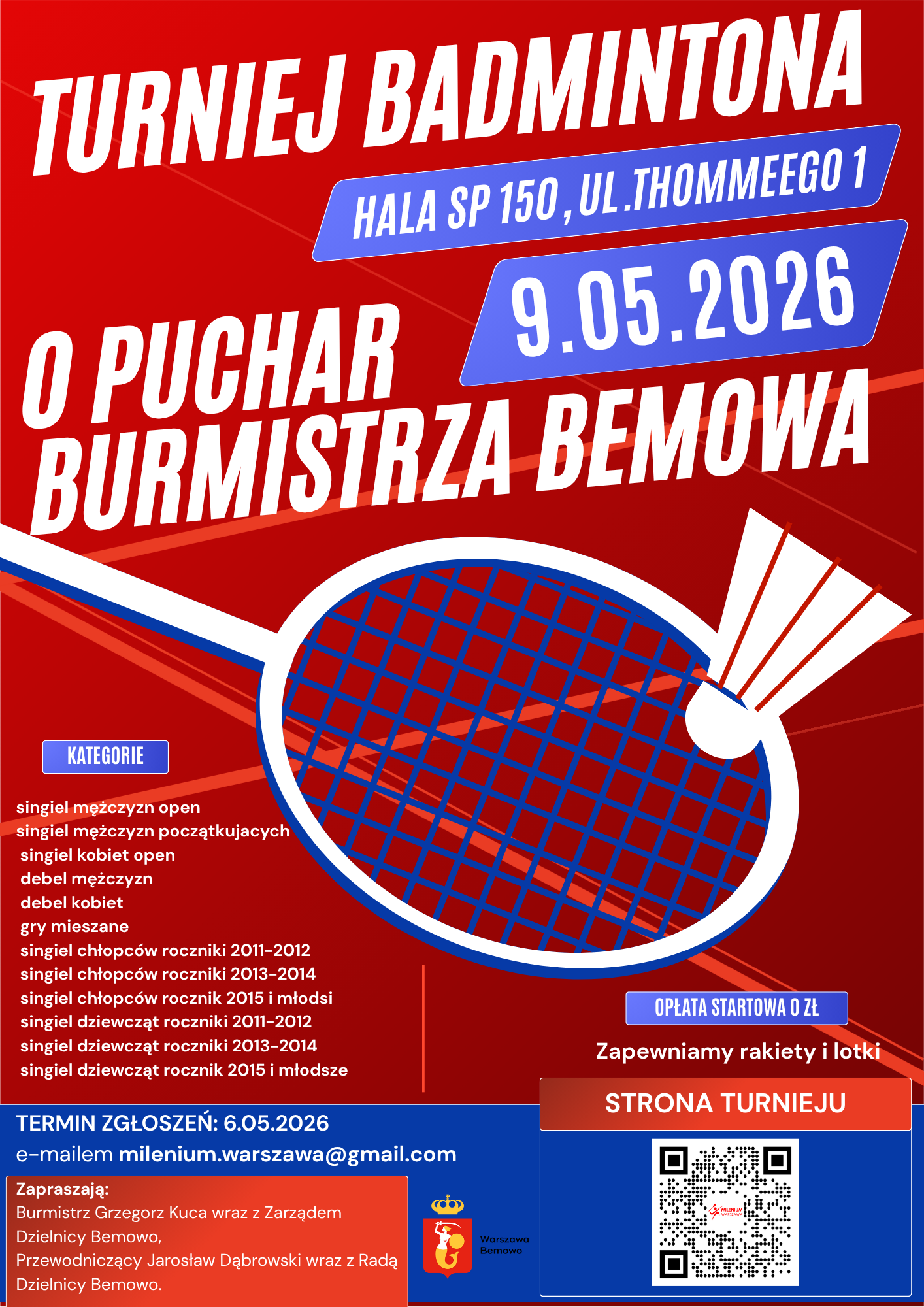 Turniej badmintona o puchar Burmistrza Bemowa